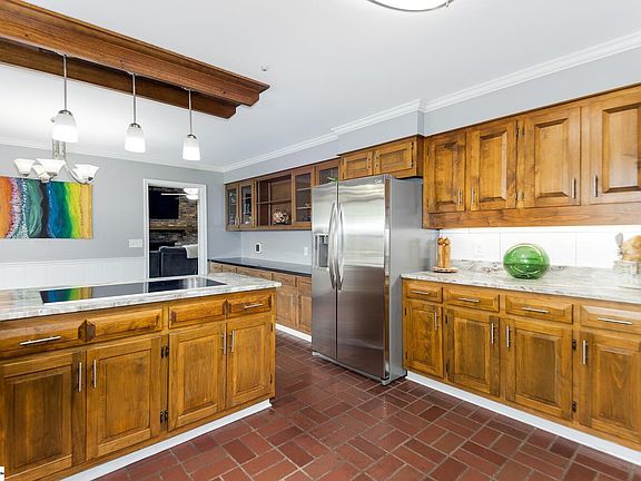 Private estate close to Easley and Powdersville area. All brick home with circular drive and extra pad. Large family room with fireplace and gas logs, pegged hardwood floors in great room and large formal dining room. Large MASTER ON MAIN and full bath. Office also on first level with built in shelving and storage area. Kitchen has brand new granite and stainless appliances. Upstairs there are 4 oversized bedrooms and 2 baths. In the basement, another fireplace with a wood burning stove. Detached 3 car garage with workshop and another storage shed all on 2.5 acres.