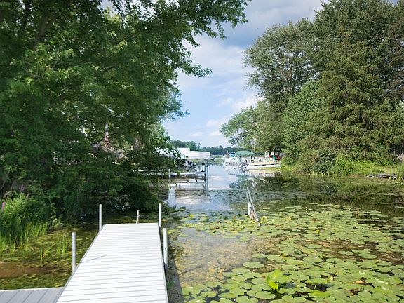 Spacious neat and clean 3 bedroom home with 108 ft. on a channel leading to 355 acre fishing and all sports Rose Lake. A great year round home or family cottage. Interior of the home has been freshly painted and has many new floor coverings. Spacious updated bathroom, new light fixtures throughout, two living rooms, upper level has wood cathedral ceiling, 3 season room, central air, newer roof shingles, large newly stained deck and a newer boat dock.