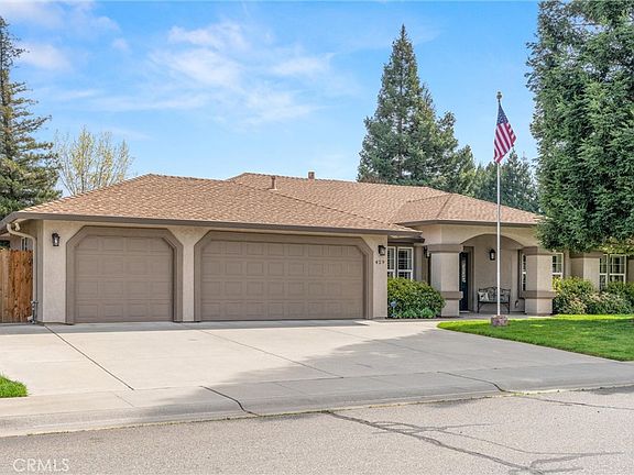 Beautifully Updated Home in Amber Grove with Pool, Owned Solar & 3-Car Garage! Tucked away on a quiet cul-de-sac in the sought-after Amber Grove neighborhood, just down the street from Peterson Park, this stunning home is the perfect blend of comfort, style, and functionality. With fresh interior and exterior paint, high ceilings, arched doorways, and a well-designed split floor plan, this home truly shows pride of ownership and is move-in ready! As you enter, you'll find a flexible office space to the right—perfect as a 4th bedroom if needed—and a formal dining area to the left. The spacious living room features vaulted ceilings and large windows offering serene views of the beautifully landscaped backyard and sparkling pool. The open-concept kitchen flows seamlessly into the living area and includes a peninsula island with bar seating, maple cabinetry, newer Quartz countertops, a mosaic tile backsplash, stainless steel appliances, and a cozy dining nook overlooking the backyard. On one side of the home, you'll find two guest bedrooms and a full bathroom. On the opposite side is the private primary suite, complete with a walk-in closet, private access to the backyard, and a luxurious en-suite bathroom featuring a dual-sink vanity, soaking tub, and separate shower. Other highlights include updated laminate flooring in the main living areas, carpet in the bedrooms, a 4-zoned HVAC system, a whole house fan, generous linen closets and storage throughout, an owned solar system for energy efficiency, and a spacious 3-car garage for all your parking and storage needs. Step outside to your backyard oasis, with mature landscaping, a large patio area, and a gorgeous pool—just in time for summer entertaining! Don’t miss your opportunity to own this Amber Grove gem.