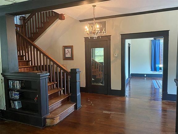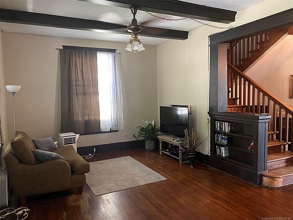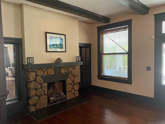 Watch the world go by on the wrap-around porch of this vintage Craftsman home near downtown Muskogee! 4 bedrooms, 1.5 baths, original hardwood floors, tall ceilings and 3 fireplaces make this charming house worth a look! Corner lot, beautiful glasswork in the front and side doors with trim mouldings you'll love. Schedule your private tour today!