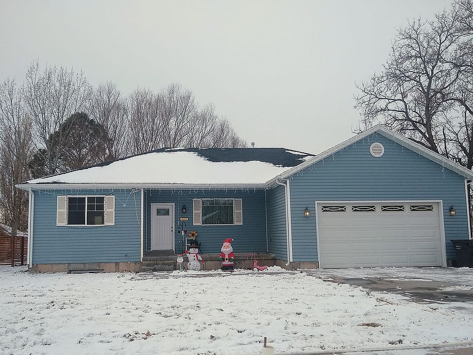 Cute blue house in a cozy small-town neighborhood. Located a block away from the LDS church, a couple of blocks from the local pool and park, and within walking distance of Nebo View Elementary. 3 bedrooms with 2 bathrooms and a spacious open living room, dining room, and kitchen. Gorgeous kitchen with white cabinets, modern appliances, and plenty of space for storage. Features vaulted ceilings in the main room and large windows, which provide plenty of light. Master bedroom contains a walk-in closet and a spacious bathroom, with stand-up shower and shelving for storage. Has an unfinished basement with plumbing set up for a potential separate living area. The garage is large enough to contain a full-size truck and car with a standing freezer. The yard is fenced on three sides with an established lawn and plenty of room to entertain on the back patio. The young peach tree in the front also recently began producing fruit, and there is a flower bed with thriving rose bush and several perennials. No need to wait months on new construction. This is a newer home with an established yard; ready to move in today! 801-227-4361