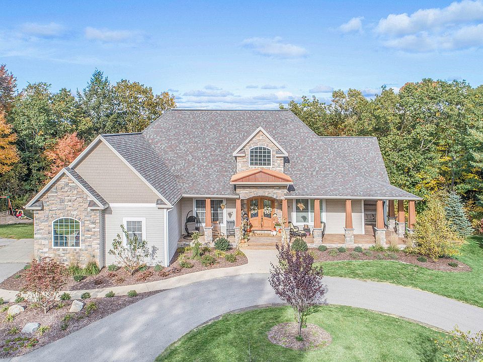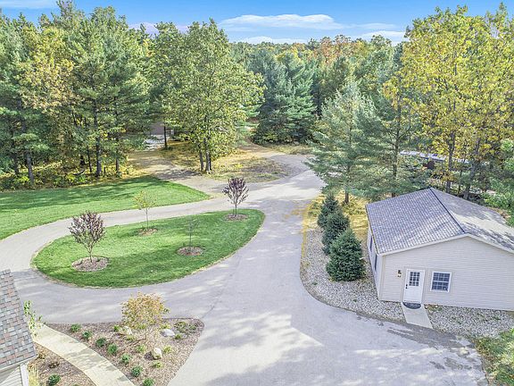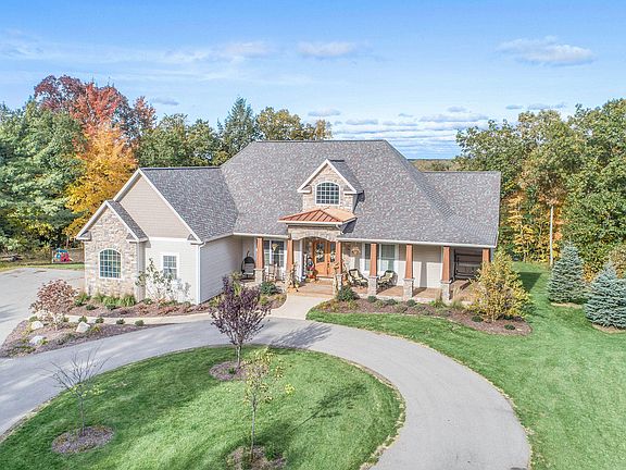 Welcome to 429 N. Brooks Rd. This gorgeous custom built ranch home sits on over 8 acres in Muskegon and is close to the Muskegon River, Lake Michigan beaches, Lakeshore bike paths, and so much more! The open concept floor plan welcomes guests with a formal dining room just off the front entry with beautiful custom arches and tiered ceilings. The floor plan then flows into the main living area with vaulted ceilings, built-ins, and a cozy stone fireplace. Just through the living rooms is the kitchen and informal eating area overlooking the backyard. The large pantry allows for abundant storage in the kitchen. Custom cabinetry, granite counters, and stainless appliances are just a few of the features of this breathtaking space. A convenient mudroom and main floor laundry are also a plus!