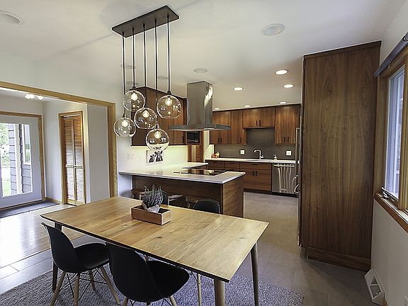 Beautifully updated mid century modern ranch with 4 bedrooms, 2.5 baths. Enjoy the remodeled kitchen with walnut cabinets, high end appliances, and functional layout. Living room has an abundance of natural light and a warm cozy wood burning fireplace. Lower level walkout with polished concrete floors. Enjoy peaceful views of the private backyard from your screened-in porch.
