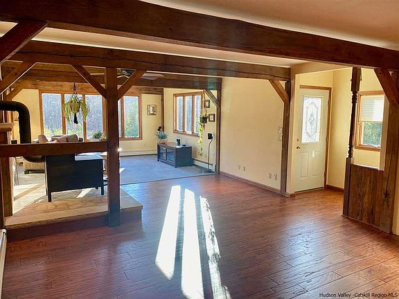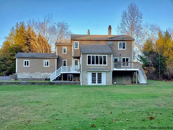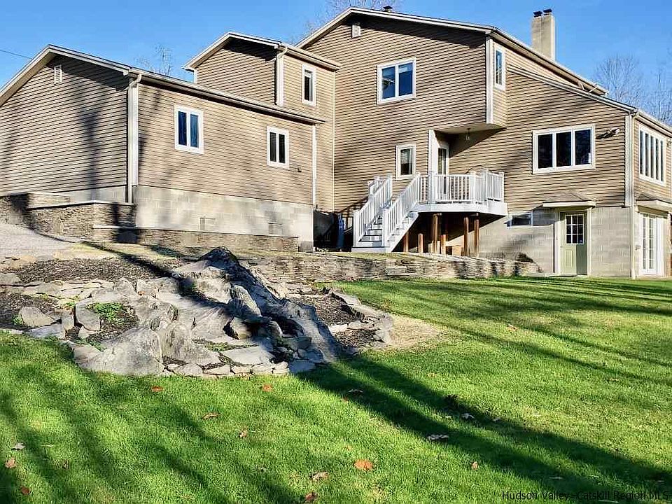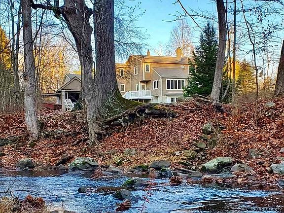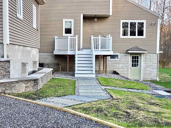 Stunning 3 bedroom, 2.5 bath contemporary on a winding country road offers 75' of frontage on the Shawangunkill (a stocked trout stream) Central Air, Central Vacuum, gourmet kitchen with 6 burner cooktop, cherry cabinets, 2 sinks, stainless appliances & granite. Walkout basement divided into 3 large sections, huge mudroom with utility sink, sunny finished office area with french doors leading to the backyard, and a craft /hobby/gym area. Two brand new Trex decks, woodstove, custom stacked stone walls, planters and bluestone paths. Level lawn for playing with your dog and kids or hosting a barbecue. Just 15 minutes to shopping restaurants etc in Middletown.