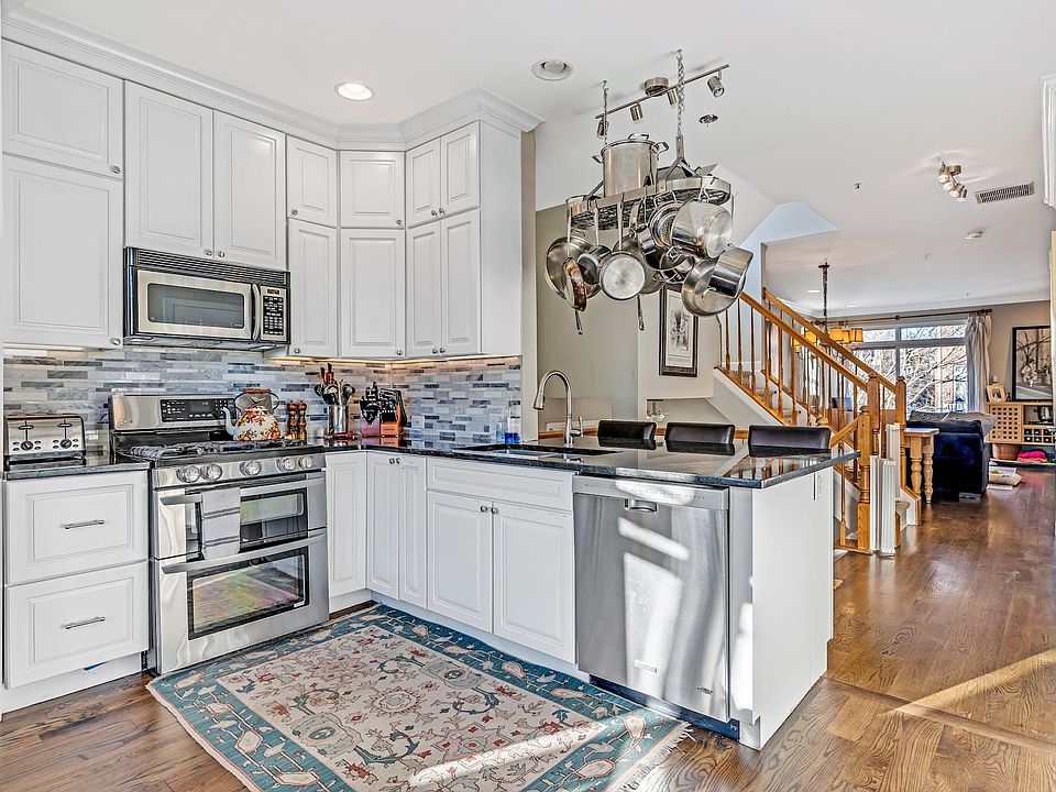 Welcome home to this hard to find 4 bed 3.5 bath, Fanwood model, end unit townhouse nestled within the prestigious Jacobs & Bulls Ferry.Traversing across four consummate levels, this sublime residence accommodates luxury living along the Gold Coast! Having North, South, and Western exposure fully illuminates the perfect space with natural sunlight and spans an incredible 2,341 SqFt, accented by Brazilian gleaming wood flooring. Travel between floors and begin at the lower level bedroom with a modern full bathroom and a walk-out patio. The second level has an expansive living area with a custom entertainment and storage unit with a balcony alongside a fully renovated custom kitchen featuring full length cabinets to the ceiling, SS appliances, wine fridge, and a breakfast bar. Moving to the third level, enjoy a beautiful primary ensuite with an updated bathroom with dual vanities, and separate jacuzzi and shower, with a walk-in closet and private balcony. Finishing out this level is a generous second bedroom ensuite with an updated bathroom. Enjoy the very rare top floor bedroom and a loft/den area to be customized to suit your needs with another private balcony. Two car parking between a garage and driveway, and a full size washer/dryer, this is truly a place you will want to call home! The community offers two pools, a play area, a Jacuzzi, 24/7 security, a free shuttle to/from the New York Waterway Ferry Terminal, and a bus across the street providing the easiest of access to NYC! Savor the magnificence of the waterfront promenade and beauty that outstretches before you. World-class shopping, dining, and all the amenities are nearby. Come home to a peaceful retreat along the New Jersey Gold Coast waterway along with the conveniences and extravagances of a City lifestyle.