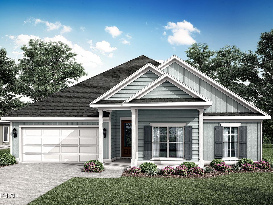 Welcome to the Magnolia floorplan, a community favorite that features two unique elevations, adding charm to the streetscape of Breakfast Point. This thoughtfully designed home boasts 2,800 square feet of elegant interior features and open-concept living space, naturally lit by the many windows and elevated ceilings. The Magnolia plan features five bedrooms, three full bathrooms, EVP flooring throughout, and a large covered back patio.