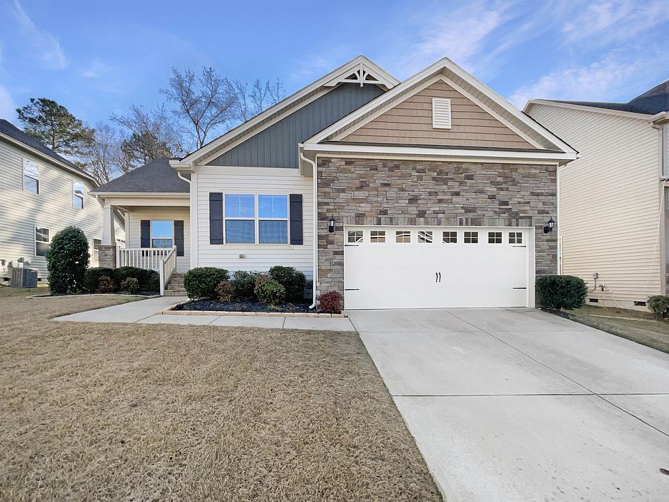 Built in 2016, this Fuquay Varina 1.5 story home offers granite countertops, and a two-car garage.