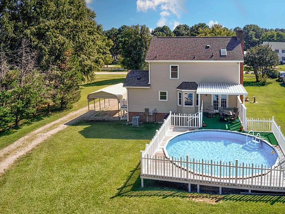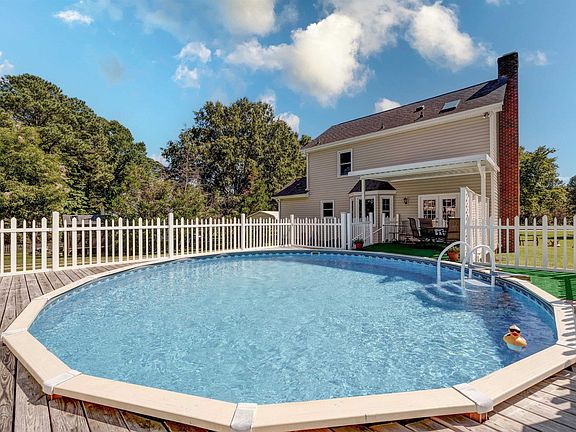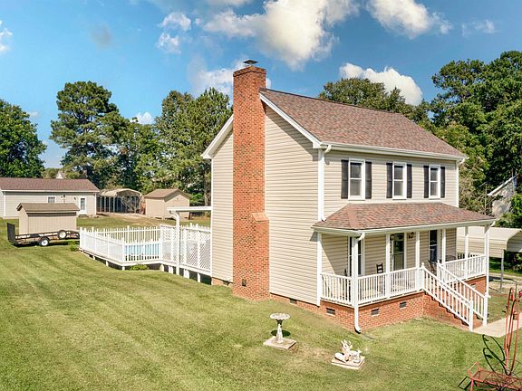 Pool, detached garage, and what a yard! Such a find with a country setting! Relax by the pool & entertain friends. This home will suit anyone with 3 bedrooms and 2 1/2 baths. Rocking chair front porch greets you as you walk in to so many updates which include new flooring throughout, new vinyl siding 2017, Water Heater 2021 & New Roof on house/garage/sheds 2018. 2-car garage /workshop/man cave (pool table negotiable), 2 small sheds and 2 carports for all your outdoor fun. Great, flat .69 acre lot gives you so much space to play, work and has storage aplenty. All natural wood doors, cupboards & crown molding on 1st floor, along with a beautiful natural brick hearth, gives this home a warm feeling!! Well maintained home in a great neighborhood and Best of all NO CITY TAXES, NO HOA!!! Location is convenient the new Costco and to all parts of the Triangle!!