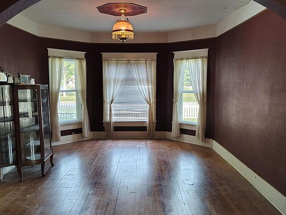 This unique home offers 3 bedrooms, 2 bathrooms, a living room, a study/office, a formal dining room, and an entryway with beautiful woodwork.