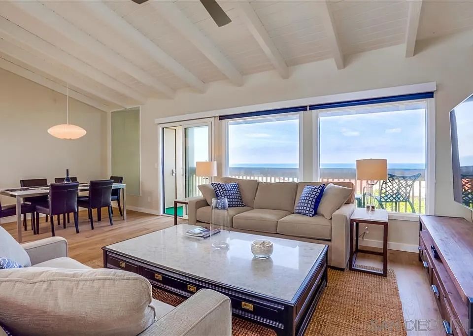 Seasonal / Vacation Rental - Beautiful 2 bedroom, 2.5 bath condo located in Solana Beach and Tennis Club. Ocean views from living room, dining room, kitchen and balcony. Skylights and large windows/doors provide natural light throughout. This condo was tastefully remodeled and features a King Bed, 75in TV in the living room and 55in TV the master bedroom. Cable and internet provided. This condo has one balcony off the living room and one off the two bedrooms both west facing.