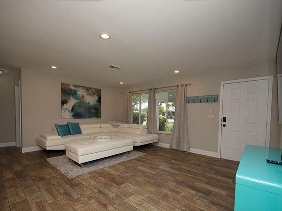 A charming tropical retreat nestled in the heart of East Deerfield Beach, this stylishly updated 3-bedroom, 2-bath home perfectly blends comfort and sophistication. From the sleek, open-concept layout to the custom wine cabinet and designer lighting, every inch is thoughtfully curated for modern living. The spacious kitchen boasts stainless steel appliances and upgraded finishes, flowing effortlessly into the sunlit dining and living areasideal for entertaining, family gatherings, or simply relaxing in style.