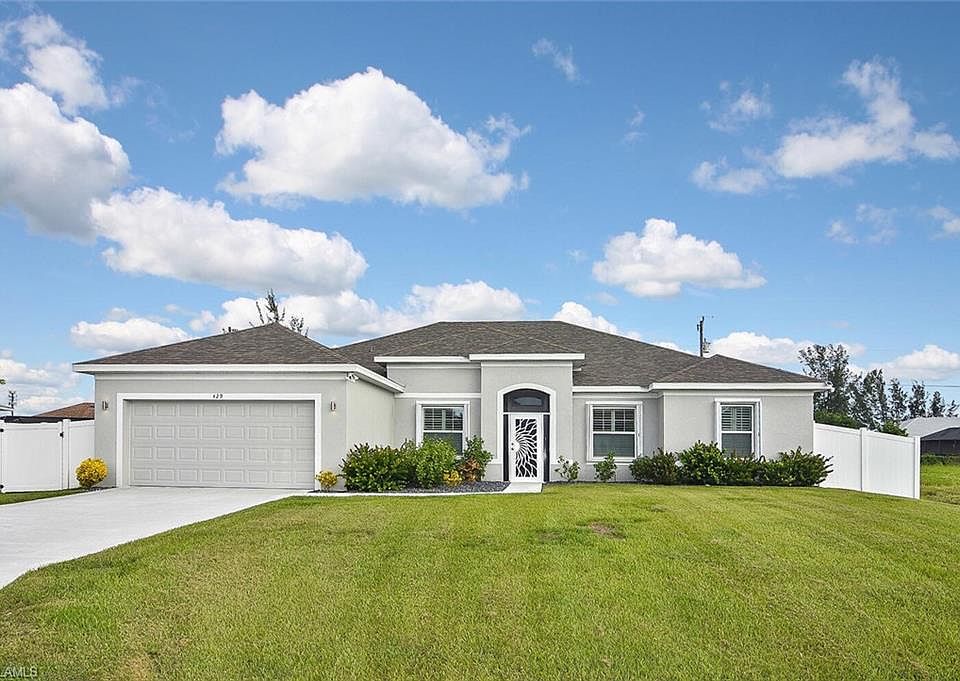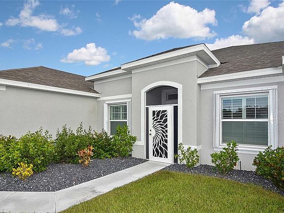 BEAUTIFUL SW Cape Coral newly built Pool Home. With 4 bedrooms,3 baths,and den,this home offers space for everyone.The spacious Great Room is a perfect place to relax & entertain & is open to the Kitchen with stainless appliances,granite counters,breakfast bar,& pantry. The Morning Room adjacent to the Kitchen has views of the pool & Lanai.The Formal Dining Room is just the place for those special occasions.This home offers a split bedroom plan.The large Master Bedroom is truly a home owners retreat with a huge walk in-closet & private Ensuite' Bath.The Ensuite' Bath offers a large walk-in shower,double sinks,granite counter, & private Water Closet.The 3 Guest Rooms have large closets and plenty of storage. One Guest Bath has a custom walk-in shower with a unique glass enclosure. The 3rd Guest Bath has a tub/shower combination.The large extended Lanai has a free form pool with bubblers, sunning deck, & outside shower. The entire property is fenced to ensure privacy and safety for children & pets. Special features include Plantation Shutters, newly installed Storm Shutters, up graded Appliances,Granite Counters,Tile Floors throughout, & much more. Schedule your showing today!