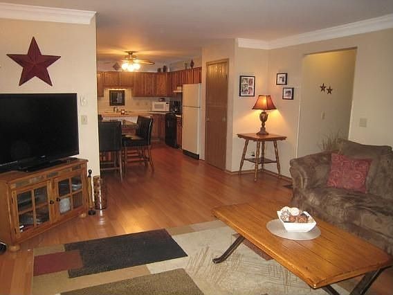 Pristine end unit townhouse condo! Cloaked in laminate wood flooring, this space shows warm and homey but is easy to maintain. Kitchen is fully equipped with all appliances, abundance of counters and cabinetry and a movable center work island and lovely accent lighting. Bedrooms are very generous in size and closet space is absolutely awesome. Attached 2.5 car garage with storage, and a private patio. Main floor utility room off of the bath, and private upper master suite!