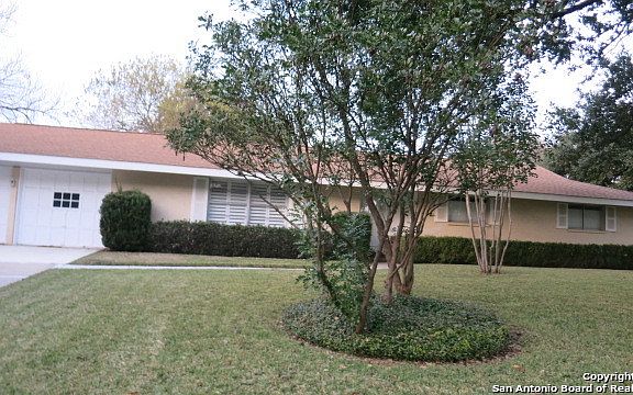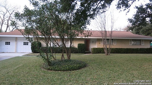 Great traditional one story - Ready for buyer ! Some updates; wood/laminate flooring, tile, plantation shutters, all black appliances and more. Light and bright! Master sitting room; nice shower, covered patio, level yard with mature trees; walking distance to elementary school. Convenient location - easy access to everywhere - close to IH35 + 410, airport. Quiet neighborhood.