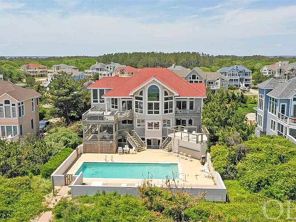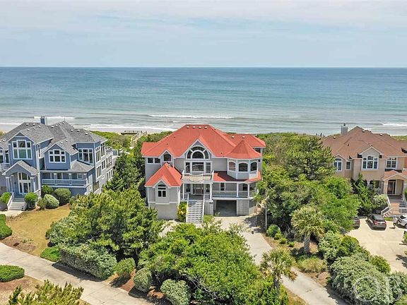 This custom-built, well-maintained, income producer, located on a quiet cul-de-sac in the prestigious Pine Island community is the epitome of luxury oceanfront living. With phenomenal ocean views found on both the second & third levels, along with every conceivable amenity under the sun, it is no surprise that this home is loved by the owners & guests alike! On the ground level outside, lush landscaping, ample parking, a carport, large fenced in patio w/ a 20x40' heated pool, raised sun deck, a covered outdoor wet bar w/tile, granite, refrigerator, SunBright TV, raised bar seating for four, & rooftop sun deck, two outdoor showers, the first of two hot tubs, storage rooms, and a private walkway to dune top deck and beach access. Inside, a tiled gameroom w/pool table, foosball, wet bar, & entertainment center, a theatre room with ample lush seating, a workout area equipped with two machines, two bedrooms, two full baths, and elevator.The middle level offers a tiled entry foyer, four master bedrooms, one handicap friendly & one w/whirlpool tub, a hallway bar w/microwave & mini-refrigerator, laundry room w/ two washers & two dryers, and east/west covered decks. On the upper level, another master bedroom w/private sundeck, spacious greatroom w/windows galore, cathedral ceiling, gas fireplace, & entertainment center, a ship's watch, gourmet kitchen w/ largebuilt-in breakfast area, granite counters, lots of counterspace/storage, & double appliances, a dining area, half bath, east/west sun decks, and a second hot tub. Enjoy the convenience of Pine Islands association pool, playground, walking paths, and all of Corolla's local shops & restaurants close by.