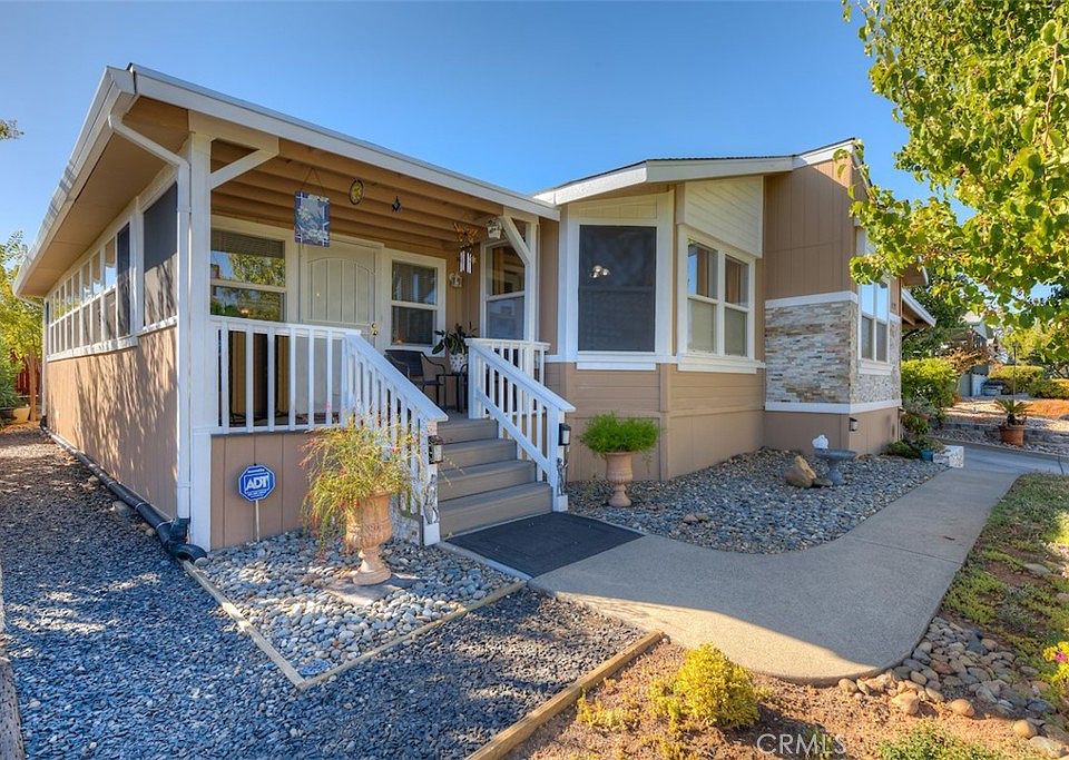 MOVE-IN READY! This 3-bedroom manufactured home is located in The Oaks Senior Community, a Gated Park for those 55 and over near Lake Oroville. There is over 2000 s.f. of living area in this home, 1581 square feet plus a 39x12 Bonus/game room. The home was recently painted, inside and out, has a New roof, and OWNED SOLAR, which means virtually no electric bill. The kitchen is nicely appointed with a Gas Cooktop, Double electric ovens, and New Stainless Microwave, Dishwasher and Refrigerator. There are new counters, a Center Island and a large pantry. All appliances stay with the home, including the New washer and dryer. Enjoy your meals at the kitchen table or in the formal dining room. All the window coverings are new and there is new Luxury Vinyl Flooring in the living and dining rooms and office. Owners' suite includes a walk-in closet and full bath with Soaking Tub, Separate Shower and Dual Sinks. The carport is double length and can accommodate 4 cars, plus there is a large Storage Shed and an Electric Lift by the backdoor. Space rent includes water, sewer, and trash pick-up. Low maintenance landscaping leaves more time to enjoy nearby Lake Oroville. The home is located at the rear of the park, away from busy streets. The Oaks Senior Community has two swimming pools, a clubhouse, and outdoor gathering area for picnics. Park approval is required for residence.