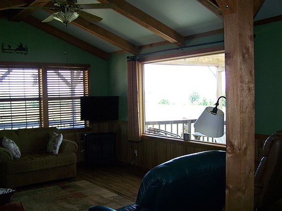 Recently remodeled lake home approximately 1100 square feet with one of the best views on the lake. 2 Bedroom and 1 Large bath with step in shower and dual vanities. Nice size kitchen with bar, fridge with ice maker, and glass top electric stove. Utility Room with washer/dryer. Central heat and air conditioning, ceiling fans and fully furnished. Wrap around covered deck overlooking the lake. One car detached garage. Lot size approximately 1.8 acres.