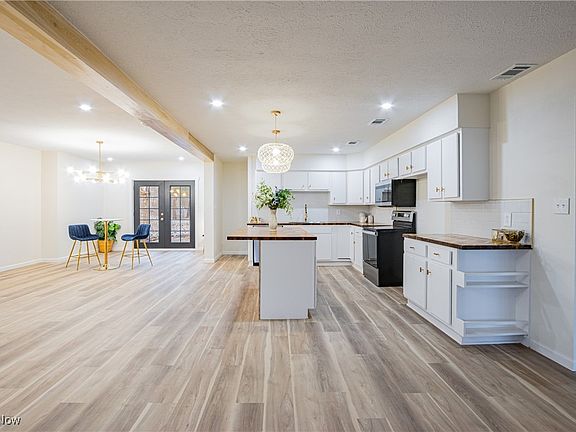 Experience the elegance of this completely transformed mid-century ranch home, featuring four bedrooms and two bathrooms in a spacious open floor plan. The roof has been entirely removed and replaced, ensuring both durability and style. Extensive updates include the replacement of plumbing and electrical systems throughout, providing peace of mind for modern living. Step inside to find brand-new flooring, fresh paint, and custom real wood baseboards and trim that highlight the meticulous craftsmanship. The attic insulation has been fully replaced with high-quality materials for optimal temperature regulation. The kitchen and bathrooms showcase stunning custom tile work with elegant gold accents, perfectly capturing the mid-century theme. A generous pantry and adjacent laundry room add functionality. Set on 0.75 acres, at the end of a street offers great privacy and lots of parking. The outdoor area features a charming she-shed off the back patio, along with two additional storage sheds, offering plenty of room for exploration and creativity. The exterior boasts fresh paint and new entry doors and windows all the way around. This property reflects true pride in craftsmanship. Don't miss your chance to own this exquisite home!