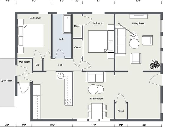 - Total interior livable area: 1,100 sqft