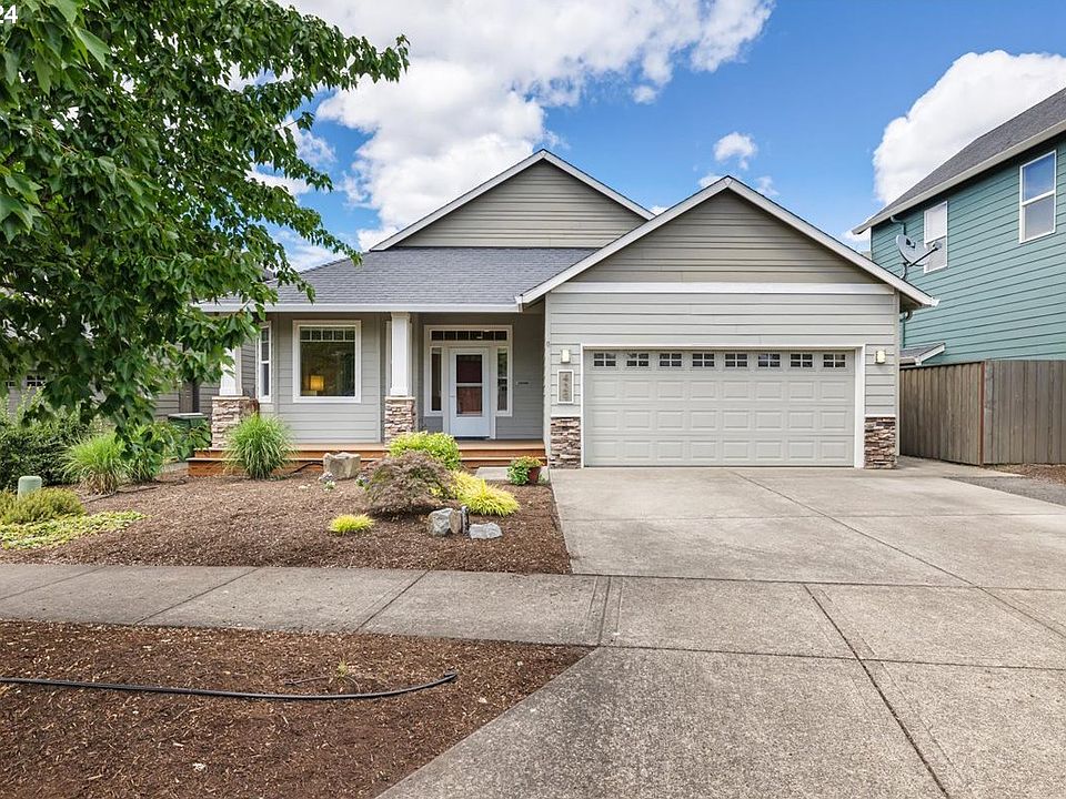 Welcome home to this lovely one-level home in north Newberg! This home has it all....hardwood floors, remodelled kitchen, remodelled bathrooms, soaring vaults, fantastic front and back decks, gas fireplace, and the sweetest detached office. As you enter the home you'll note the front room can be used as a sitting room, formal dining room or office. The updated kitchen features quartz counters, an eat-at-bar, pantry and soft close cabinetry. The kitchen opens to the spacious living room and breakfast nook. The living room features vaulted ceilings and a gas fireplace and slider out to the backyard. Gorgeous primary suite with vaulted ceilings, custom shower, updated cabinetry, quartz counters, double sinks and custom walk-in closet. Enjoy summer evenings on the back deck. The backyard also includes an 8x12 storage shed and the detached office, the perfect space to retreat to.