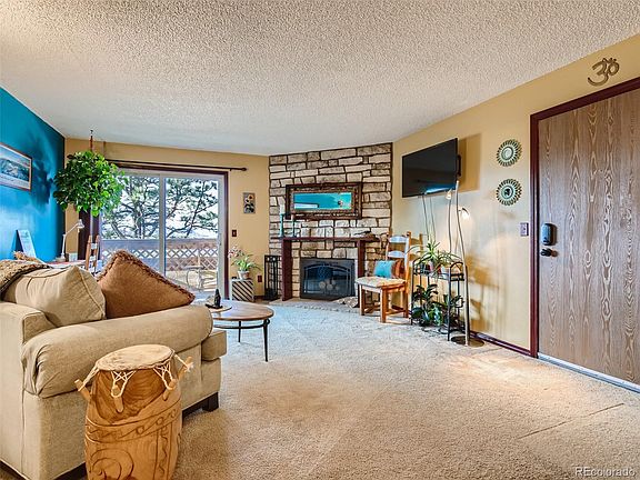 Private balcony faces northwest, offering your own quiet sanctuary to enjoy the sun setting over the mountains at the end of every day. Stay cozy in the winter with the wood-burning fireplace adorned with a custom mantle and new insert. The large bedroom has ample space for secondary use, such as a fitness or office area. The walk in closet has custom wood shelving built to maximize the vertical storage space. Spacious bathroom allows two people to maneuver comfortably, or one to twirl joyfully. Laundry in the unit. Kitchen has an eat-in breakfast nook. This unit includes ownership of a private, locking 1-car GARAGE for storage/covered parking. The Sellers understand you may not vibe with their bold color choices, but don’t let that distract you from this amazing condo and location! Sellers are offering $1000 PAINT CREDIT AT CLOSE so buyers may plan on selecting their own colors.
