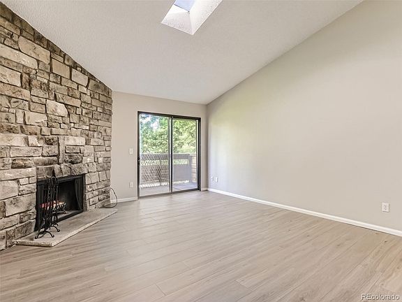 - Description: Natural Light Filled Living Room With Amazing Patio And Skylight. Stone Fireplace To Keep Warm In The Colorado Winters.