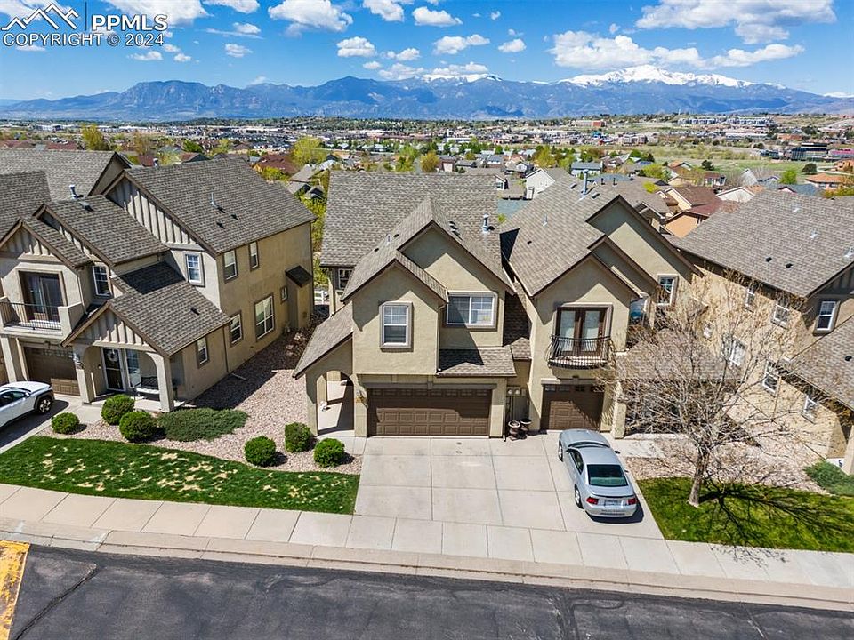 VIEWS! VIEWS! VIEWS! Enjoy sunsets over the mountains and Pikes Peak, too! Welcome to this beautiful townome-style condo nestled in the heart of Colorado Springs, backing to open space and offering breathtaking mountain views. Enjoy a worry-free lifestyle where you can relax and let someone else do the hard work. This home boasts a blend of modern elegance and cozy comfort, making it an ideal retreat for those seeking a tranquil escape. Located in the highly sought-after east side location, this home is situated in a peaceful gated community with stunning mountain views. The open-concept living area with large windows floods the space with natural light, creating a warm and inviting atmosphere.The luxurious master suite offers a private retreat with a spa-like bathroom, walk-in closet, and private deck with Peak views. Two more spacious bedrooms, 10 x 8 roomy loft/office area and 2 bathrooms offer ample space for your family and guests. The chef's kitchen features updated appliances and plenty of storage space for all your culinary needs. The TWO car garage provides ample, secure parking and storage space. Spacious laundry room close to the bedrooms includes WASHER & DRYER and extra storage. Enjoy the serene Colorado landscape from the backyard with a patio, perfect for outdoor gatherings and relaxation. This is the perfect opportunity to live in a peaceful, upscale neighborhood while still being close to all the amenities that Colorado Springs has to offer. Ideally located close to Peterson AFB, CS airport, and the Powers corridor. Are you tired of shoveling snow, cutting the lawn and maintaining the exterior of your home? Monthly HOA includes SECURITY GATE, WATER, SEWER, resort-style POOL and HOT TUB, beautiful clubhouse and exercise studio. Just think - only 2 payments to track each month - one to the HOA and one to CS utilities f(or heat and electric). Now that's simplified living in a gorgeous setting!