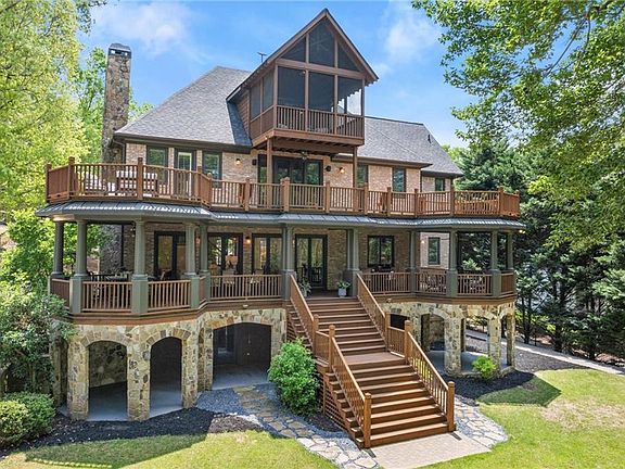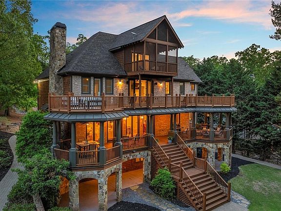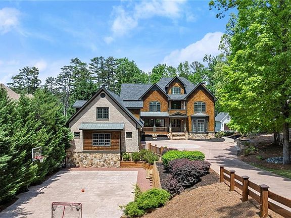 Live the ultimate lake life in this exquisite custom-built craftsman estate in a top-rated school district, boasting 100 feet of prime Lake Lanier shoreline, a double-slip partially covered private dock on year-round deep water with a jet-ski lift, and an over water party deck perfect for relaxing or entertaining by the water. Set on a gently sloping lot with a flat back yard, the home offers panoramic lake views from all 4-levels of luxury living and showcases exceptional outdoor living with expansive wraparound decks and a stunning stone patio that flows seamlessly toward the dock path. Crafted with timeless cedar, stacked stone, and brick, this residence impresses from the moment you arrive and even has it's own private sports court. Upon entering through the wood and glass double statement doors, coffered ceilings and custom built-ins define the main living space, while a formal dining room connects to the chef’s kitchen through a wet bar butler’s pantry. The kitchen features a walk-in pantry, breakfast area, and an additional flex space just behind it ideal for a drop zone after lake outings or as a second pantry. A spacious main floor bedroom with a private en suite bath adds convenience and flexibility for guests, multigenerational living or for a great home office. The main floor also boasts a laundry room & additional full bathroom for guests. Designed for multi-level entertaining, the finished terrace level is a dream—complete with a large living space with plenty of room for sofa, a pool table, a poker table, a sauna, ping pong & whatever else you can dream up. There’s also a home gym, a guest suite with full bath & it's own private entry, and direct access to the lake, flat backyard, firepit & dock path from the terrace level as well as an exterior storage space featuring a workbench. Upstairs, the oversized primary suite is a private retreat with its own expansive deck overlooking the water, spa-inspired bath, & a huge bonus room attached. Two more bedrooms complete this level, while the fourth floor offers a versatile bonus room with full bath—perfect as an additional bedroom, media room, or office. A separate 3-car garage connected by a covered breezeway offers potential for an income-generating apartment or private guest quarters. Professionally landscaped grounds include an outdoor basketball court and space to add a pool, elevating the estate feel. This one-of-a-kind Lake Lanier estate blends luxury, comfort, and unbeatable lakefront access—designed for those who want to enjoy every moment of lake living. Discover the unparalleled lifestyle that comes with living on the breathtaking shores of Lake Lanier, where everyday feels like a vacation. This stunning lake is not just a picturesque backdrop; it's a vibrant community hub that offers an array of year-round activities for residents and visitors alike. Imagine waking up to the soothing sounds of water lapping at the shore, enjoying morning coffee with panoramic views, and having endless opportunities for outdoor adventures right at your doorstep. From boating and fishing to hiking and picnicking in the nearby parks, Lake Lanier offers a perfect blend of relaxation and recreation. Adventure awaits at Lanier Islands, where the thrilling water park provides endless fun for families and friends, featuring exciting slides, a lazy river, and sandy beaches perfect for sunbathing. With your boat docked just steps from your home, you can effortlessly cruise to popular lakeside restaurants for a dinner, where you can enjoy lifestyle music with your friends and family. Embrace a lifestyle filled with sun-soaked days spent on the water, cozy evenings by the firepit, and a lake community that cherishes the beauty of nature. Living on Lanier means not just finding a home, but discovering a vibrant way of life that celebrates both adventure and tranquility. This truly is the perfect place to call home.