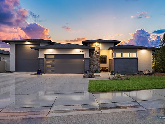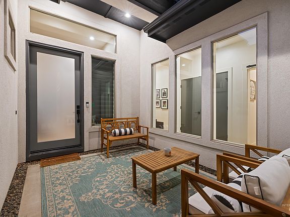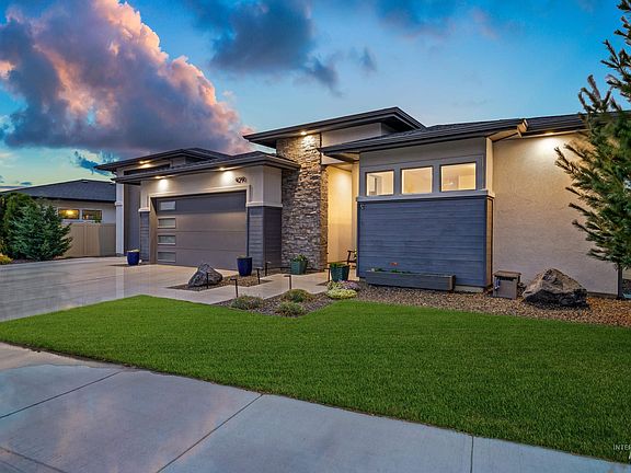 Custom Zach Evans home. Unique features highlight this 2321 Sq Ft SINGLE LEVEL open-concept floor plan. Approx. 1296 sq ft garage with RV Bay (16x42) in prestigious Movado Estates. North-facing backyard views with no immediate rear neighbors. Windows for miles bathe the interior in natural light. Upscale 3-panel shades for privacy. SS Bosch appliances in Chef's kitchen with Quartz counters. Extra large kitchen pantry. Amazing butler pantry as well. Owners enjoy separate vanities, quartz counters, and a walk-in tiled shower. Oversized closet with convenient laundry access only steps away. 3-season interior courtyard adds +- 180 sq ft for quiet coffee time or visits with friends. Covered patio for grilling and entertaining. Easy access to the community pool, paths, parks, and dog park. Restaurants, Top Golf, and new Starbucks approx. 4 minute drive. 10 minutes to the Village, new In N Out, Trader Joe's, Costco, Boise Airport, and downtown.