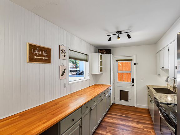 Super cute and newly remodeled modern home awaits you! The warmth of the wood stove creates an inviting vibe in this cool contemporary living room. Open concept kitchen appointed with granite countertops and energy efficient stainless steel appliances. Beautiful wood countertops are a wonderful place for preparing dinner or entertaining with friends and family. Alexa controlled dimmable lights and keyless entry for your convenience. Stackable washer and dryer and tankless energy efficient water heater. Backyard offers a private sanctuary perfect for relaxing. Workshop equipped with power for your creative projects. Side yard is fully fenced with artificial turf. Walking distance to Mt. Elden trailhead with access to Arizona Trail, Pipeline, and Fat Man's Loop. Wonderful home or investment!