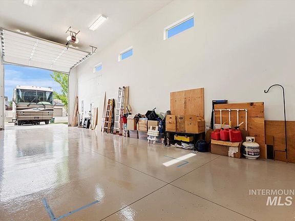 Spectacular home offers every key ingredient–premium lot, location, quality design, and dreamy features including an RV garage.. With power, dump station, 46-foot depth, and 14’ high doors, this RV garage is a dream come true. No more storage fees or hassle—keep your RV at home and enjoy effortless travel. Fantastic floorplan with split bedroom design, open great room, and deep covered patio. The lush, landscaped yard backs to a serene common area, ensuring privacy. Indulge in resort-style living with a community pool and pickleball. You will love this home’s welcoming courtyard entry, large pantry, convenient laundry room, and a private primary suite with a luxurious shower, tub, walk-in closet and split vanities. A versatile bonus room with a walk-in closet and full bathroom is perfect for guests or hobbies. This home is better than new, complete with window treatments and established landscaping. Located near The Village in Meridian and Eagle, you'll have plenty of dining and shopping options close by.