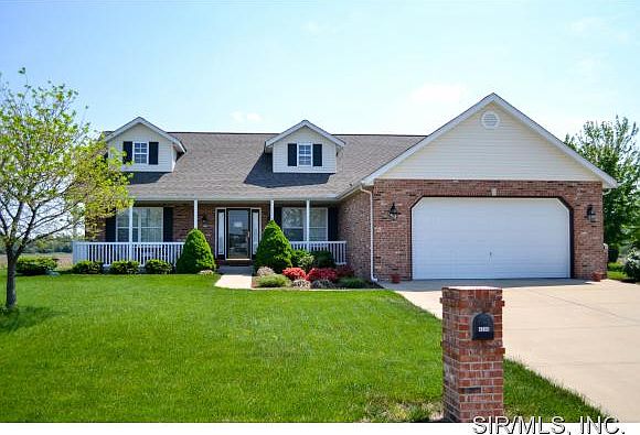 This immaculate split bedroom ranch is move-in ready, centrally located and offers pleasing upgrades. Charming covered front porch adds terrific curb appeal while the hardwood foyer invites you in to the open layout. Hardwood in the main hallway & kitchen, vaulted ceiling in the dining room, foyer & living room and a gas fireplace in the living room as well. Upgraded fixtures throughout plus ceiling fans in the bedrooms and living room. Breakfast area/kitchen is tastefully appointed with 36" cider cherry cabinetry, recessed lighting, under cabinet lighting, pull out drawers and pantry. Master suite offers dual closets(one walk-in) and a master bath with soaking tub, walk-in shower, adult height dual vanity and ceramic. Split bedrooms concept leaves two other generous size bedrooms and a nice full bath. Full unfinished basement is plumbed for additional bath and offers tons of potential. Home backs to farmland with nice views and no back neighbors to worry about.