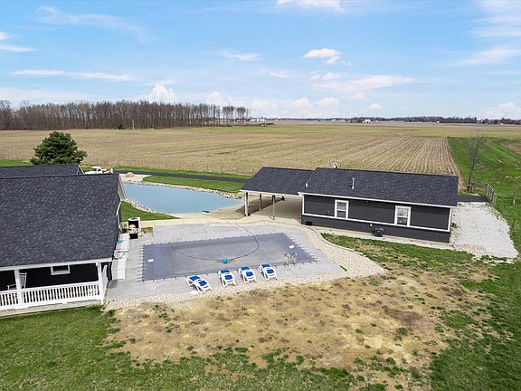Welcome to your dream in Fairland, IN! This stunning property is 8 acres of beautiful land, a primary home, pool/guest house and outbuildings. Prepare to be wowed when you step inside the beautifully updated 3-bed, 2-bath home! The open living area features a dual FP, LR, DR, KT with stainless steel appliances, ample counter space. You'll love the master suite, complete with a private new bath and plenty of closet space. The new flooring throughout, adds to the home's modern charm. The new pool/guest house has LR, KT (w/ new granite counters), 1 bed, 2 car garage w/ new epoxy floor. A new heated inground pool w/ stamped concrete deck, pond featuring a beach area, and XLG outbuilding. Large garage has finished walls and a new HVAC system.