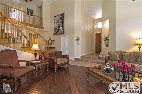Gorgeous Plan 3 Verona featuring remodeled open kitchen w/granite countertops, island and top of the line Viking stainless steel appliances. Kitchen opens to Family room w/fireplace, crown molding and shutters. Step down into formal living room with Mohogany Hardwood Floors. Formal dining room features crown molding. Downstairs features a bedroom with full bath. Spiral Staircase leads to Large Master Suite with large sitting area, adjoining master bath w/dual sinks, walk-in closet , separate tub & shower and tile flooring. Three additional bedrooms up with 2 baths. Beautifully maintained private back yard w/lush landscaping & Built in BBQ Island. 3 car garage w/plenty of room for storage. Located within walking distance to schools, Community pool & spa. Move right in & Enjoy the summer! Brokered And Advertised By: Keller Williams Realty Listing Agent: Glenn Dormer
