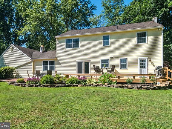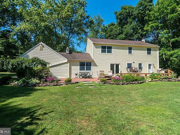 This gorgeous single family home is set on a beautifully landscaped property featuring mature trees, manicured gardens and bordering township green space. Well maintained and updated throughout ownership including roof, siding, gutters, downspouts, windows, driveway, large outdoor shed, heating system replaced and new central A/C recently installed. Wired speakers are located in the living room/pool room, kitchen, and outside on the deck with Bose surround sound speakers located in the family room. Enter into a charming foyer and you are greeted with hardwood floors that are found throughout most rooms of the home. The formal dining room is located to the right and features over-sized windows, chair rail and a tasteful light fixture that create an ideal space for the large family gatherings. To the right you will find a spacious living room that currently serves as an entertainment room with billiard table and is brightened by the over-sized front windows, pendant light and recessed lights. Down the hall and toward the back of home is where you will find the beautiful kitchen which is complete with large granite island with place for the stools and overhanging pendent light, stainless steel appliances, pantry and recessed lighting. The kitchen opens to a cozy family room that has radiant heated floors, wood burning fireplace, built-in shelving and access out to the front vestibule. Completing the main level is a half bath with tasteful fixtures, separate laundry room and a sliding door off the kitchen that leads out to a freshly stained rear deck and lower brick paver patio, as well as, views of a great back yard with plenty of space for the garden and play. Upstairs you will find a spacious landing and access the master bedroom highlighted by a renovated master bath with vaulted ceiling, walk-in closet, tile surround walk-in shower and the comfort of radiant heated floor. There are three additional nice sized bedrooms, each with ample closet space, a renovated full hall bath with soaking tub/shower and double sink, and a hall linen closet. A two car garage can be accessed from the vestibule and has space for tools and storage.. Additional storage space will be found in the pull down attic, basement and exterior storage shed. The yard has an invisible fence that goes around the 1 acre lot.