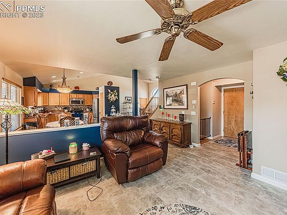 This spacious gem offers five large bedrooms, three bathrooms, a gorgeous, fully finished basement, and a 3-car garage. As you enter the main level, you are invited into a large warm, comfortable, great room with vaulted ceilings. The main level continues with an open concept and flows beautifully and seamlessly into a breakfast/dining area, a family room with a gas fireplace, and a large kitchen with granite countertops, newer stainless steel appliances, and a unique backsplash. The main level is also where you’ll find the laundry facility with a powder room and the entry into a large 3-car garage. The upper level has a hallway linen closet, two large bedrooms with a common bathroom, and an enormous primary bedroom with an en-suite and a substantial walk-in closet. As we move to the finished basement, you will find two additional large bedrooms with an adjacent full bath and ample flex space. You won’t find backyards like this. There is an abundance of space to play games or just relax. If you like the sun, there is a lovely patio; however, if you need a little cover but still wish to be outdoors, there is a sizeable covered deck. Tucked into a corner of the yard is a shed that sits on a foundation, which is perfect for storing equipment and lawn chairs. This property offers fast and easy access to most of the military installations in beautiful Colorado Springs, and it is within walking distance of both Elementary and Middle Schools. Yet, you will not be affected by the traffic associated with the drop-off and pick-up times of the schools. Medical facilities, dining, shopping, and entertainment are all just a short drive away. Brand new radon system just installed.