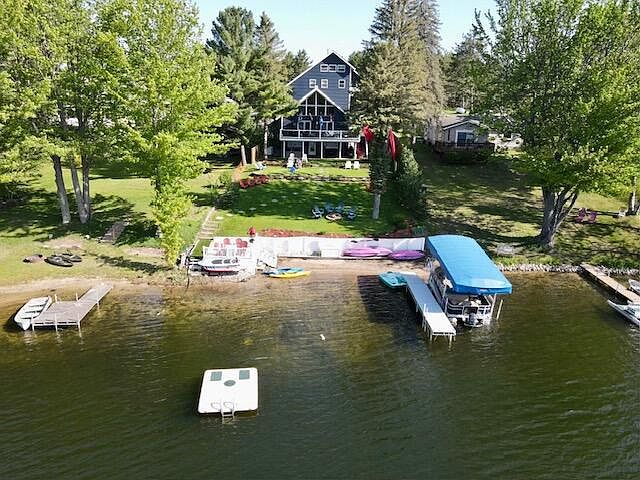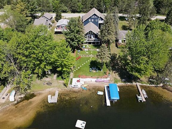 HIGHLY DESIRED ALL-SPORTS BIG LAKE in Gaylord, Michigan! Rare multiple opportunities with this fully furnished, turnkey 6 BR, 6 Bath home with 60' of sandy frontage. Continue to use as a VRBO income property or would make an outstanding primary home or family vacation compound! So many features including a huge master suite with fireplace and sitting area, open Great Room with fireplace, granite and stainless steel kitchen with double ovens, breakfast bar and large dining room. Head down to the lower level game room to enjoy a full wet bar, pool table, fireplace and outdoor hot tub! Large 2 car garage, multiple laundry facilities and so much more! Guest suite on entry floor has separate kitchenette as well! Don't wait on this one!