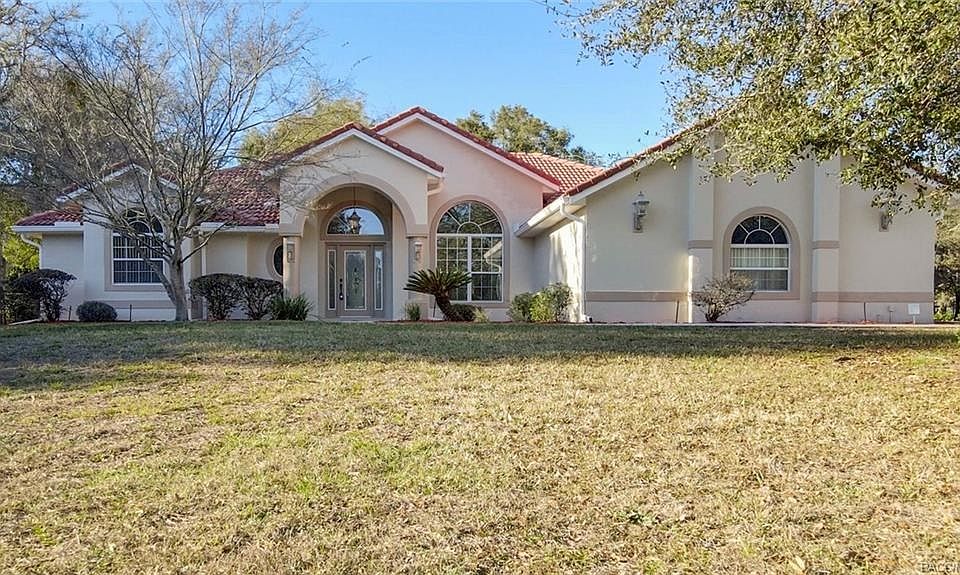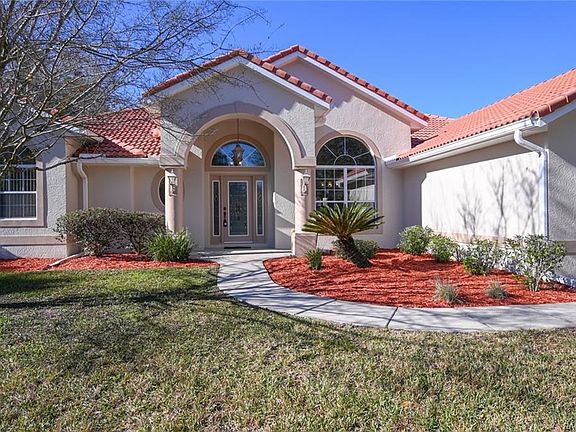 Beautifully refurbished Florida Great Room Home with a Tile Roof that is sitting on large pie shaped 1 acre homesite with a wonderful pool, fountain, outdoor kitchen with full Pool bath can be yours! Newly Painted inside and out, Home and Pool Deck too. 3 bedrooms, 3 baths, Large Garage for all your toys! TONS of Closet Space & a gas fireplace makes for cozy wonderful living. View the Virtual Tour to how wonderful it feels to live there ! Home has wood flooring, tile & carpet. Kitchen has granite counters, wood cabinets with ample breakfast nook & nice appliances including a wall oven as well as the electric stove. Fairview Estates is a wooded community that feels amazing to live & visit. Set back from Rte 486 just far enough, you can't hear road noise, but are close enough for everything you want. Imagine yourself in this beautiful home for the best time of year in Florida with lots of fresh air & so many things to do!