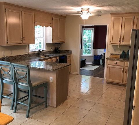 - Kitchen Features: Breakfast Bar, Cabinets Stain, Eat-in Kitchen, Stone Counters, Solid Surface Counters, Other