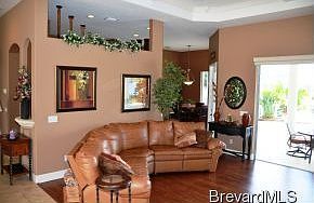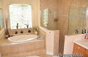 JUST REDUCED!! Gorgeous views of the lake. Features 4 bdrms plus OFFICE. Open floor plan with 12ft. ceilings. Ceramic & Wood floors. Second floor suite includes WET BAR & BALCONY-Great for viewing launches from Space Center. Master bedroom features sitting area w/access to the pool. Master bath has soaking tub w/his & her vanities and walk-in shower. Other features include: tray ceilings w/up lighting, eat-in kitchen, breakfast bar, work bench in garage, etc. Centrally located. Minutes to beach!