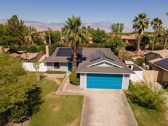 42915 Virginia Ave is a stunning single-family 3 bedroom, 2 bathroom home with a den. This 1,371 square foot home is located in a very desirable area in the City of Palm Desert and backs up to Toscana Country Club. Upon entry you are met with tons of natural light, recessed lighting throughout, and a large newly painted living room featuring a cozy fireplace. Immediately to the right of the living room are French Doors leading into the den, which can also be used as a fourth bedroom or office. The kitchen has well-appointed cabinetry, state-of-the-art stainless-steel appliances and a spacious kitchen island that is perfect for hosting gatherings. As you continue down the hallway toward the bedrooms you will notice the washer and dryer closet and full bathroom. The large primary bedroom is accentuated by a conjoining bathroom suite featuring a bathtub, shower and extra storage. The backyard boasts of an adorable patio area perfect for summer BBQ's, open grass area, and inground pool. Some other highlights include a new solar panel system and new roof. You do not want to miss out on this gem and please reach out to us today to schedule a tour!