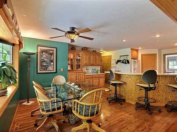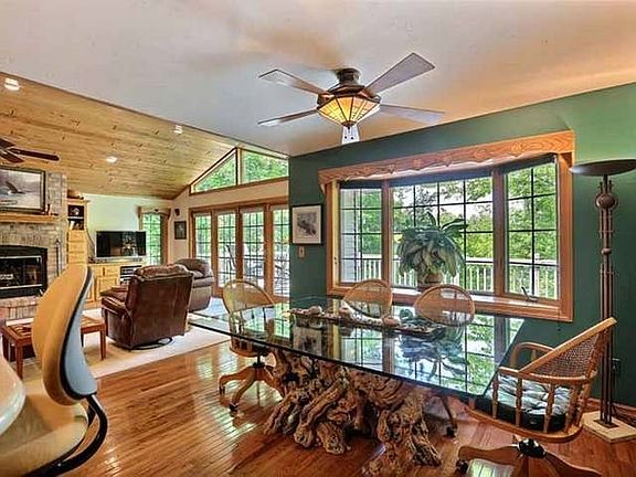 Lake George Executive Home has 4 bedrooms, 4 baths and 158' of sand frontage within a few miles of Rhinelander. This home has a large living room with vaulted ash ceilings, a wood fireplace and open concept design provides plenty of room to host family & friends. The master bedroom has a lighted tray ceiling, a walk-in closet, custom tiled shower with outstanding views of the lake from nearly every room. The kitchen has Corian countertops & custom built-in oak cabinets. The office has Hickory floors, ceiling fan, french doors and plenty of light. Two additional bedrooms, another full and half bath, and laundry room complete the main level. The walk-out lower level features a gas stove, guest BR & bath, functional large workshop w/access to the 3 car attached garage. All the amenities are included - patio w/hot tub, sprawling lakeside dock, Kohler fixtures, C/A, central vac, generator, lighted stairway to lake. Don't let the steps fool you, there is a flat area by the waters edge.