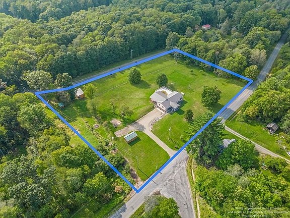 Beautifully tucked on 4 acres, enjoy the sprawling ranch home on this adorable farmette! The layout boasts an open feel with an expansive living room offering panoramic views of your private setting & a stone fireplace offering a handsome focal point. The family chef will adore the kitchen - plenty of cabinet & counter space peppered with stainless appliances & an oversized island! The French doors lead to your oversized covered deck where you can enjoy your pool or just taking in the serene setting. Completing your entertaining space, the hardwood floors complete your entertaining space. You have plenty of bedroom space with 3 bedrooms on the main floor & an additional 2 rooms offered in the finished basement. A full bath can be found on each level. Outside, the 3 outbuildings offer ample amounts of exterior storage with an acre or so of fenced pasture. A push-button start generator adds to your piece of mind. Come see all that this property has to offer!