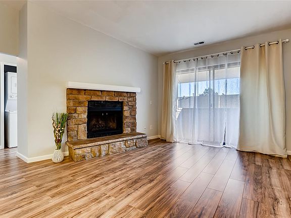 Rare find under 200k!! Nice 2 bedroom/1 & 1/4 bathroom unit in Chaparral, top floor with vaulted ceiling - no one above you, move-in ready. Located in a highly desirable Cherry Creek school district, across the street from Quincy Reservoir, community adjacent to the open space and bike trail, close to shops and restaurants. Fully remodeled bathroom, new water resistant laminate flooring, updated kitchen, wood burning fireplace, stackable washer/dryer in unit. Tons of storage space, spacious walk-in closets in each bedroom, additional secured storage just outside the front door. Large community pool and low HOA.