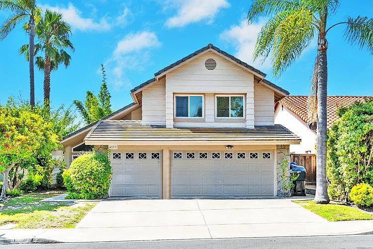 This 5-bedroom, 3-bathroom home, is ideally situated in a quiet cul-de-sac, in prime location near excellent schools, parks, and easy access to the 56 and I-5 freeways. This home offers one bedroom downstairs and the 5th bedroom can be transformed into a master bedroom's private retreat or utilized as an office space. Energy-efficient, with solar panels and an EV charger in the two-car garage. The backyard provides a serene retreat with pool & spa, perfect for relaxation and outdoor enjoyment. Solar, EV charger, refrigerator, washer & dryer, gardener and pool service provided. Available to rent as of 6/1.