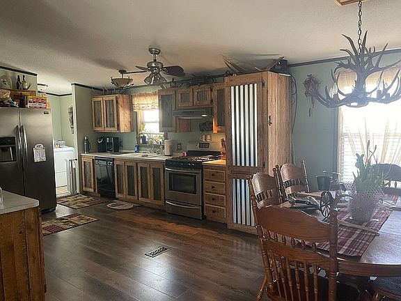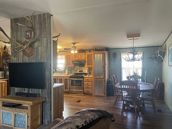 Main living area has been Remodeled, new flooring and cabinets textured walls 3 bedroom 2 bath on 3 lots! Master has a garden tub and separate shower with his and her sink. 3 min to town in a quiet neighborhood surrounded by the National Forest. 2 sheds 1 is a Large shed with loft holds 4 seater side x side. Large Chicken coop. Fenced in yard great for dogs. Cozy cabin feel on the inside. Lots of parking and room To grow. Covered front porch. Original owner.