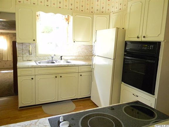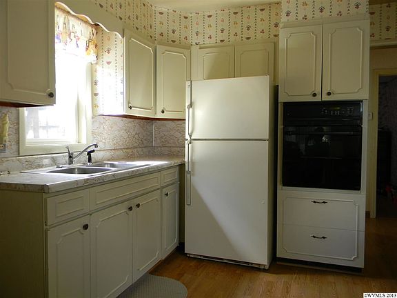 Great opportunity. Charming home with newer furnace (2011), roof (2009) and vinyl windows. Kitchen includes the fridge and has built-in banquette. Features front living room, currently used as dining and large family room with gas freestanding stove. All of this on 1/4 acre with adorable gazebo, garden area and fenced backyard. Property has large shop w/multiple work spaces & storage. So much for less than $100,000.