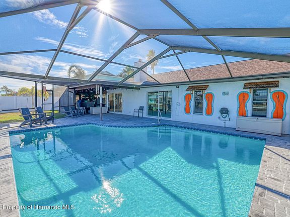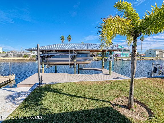 INVESTOR SPECIAL!! NO HOA!! NO SHORT TERM RENTAL RESTRICTIONS!! DIRECT GULF ACCESS!!This 3-bedroom, 2-bathroom + ½ bath in the garage home is perfect for both homeowners and investors! Step outside to enjoy your private SCREENED IN POOL with a TIKI BAR AREA, perfect for relaxation and entertaining. The oversized 2-car garage includes a convenient ½ bath, and the property also boasts brand-new pavers and stamped concrete (2024). Key updates to this open floor plan home include a brand-new A/C and duct work (2024) for added comfort. The property includes a 10,000lb covered boat lift (Armor floating dock does not convey), perfect for boating enthusiasts. Don't miss the opportunity to own this stunning property with prime Gulf access, and enjoy the flexibility of no HOA or rental restrictions. Schedule your showing today! The owners flood insurance policy is transferable.