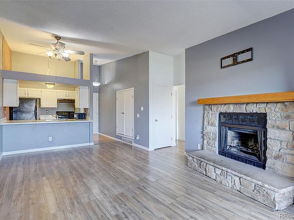 Nobody above you in this upstairs condo -- and with an unobstructed view that overlooks the West Toll Gate Creek greenbelt! Ideal floorplan for families, remote workers, and home schoolers. Both primary-sized bedrooms have a walk-in closet. Enjoy the great-room effect, with the family room connected to the dining room, which has easy see-through access to the kitchen. Dine or set up a laptop at the extended kitchen counter. The in-unit laundry closet includes the washer and dryer. Conveniently located next to the front door is a locked storage closet that's big enough to store bikes, skis, ladders, and more. Two stand-alone window ACs are included. Enjoy the outdoor swimming pool, just a few steps away from the unit. This home is within walking distance to Quincy Reservoir, which is a great area for hiking and picnicking. Easy access to Southlands Mall, King Soopers, Target, Lowes, multiple restaurants, and DIA.