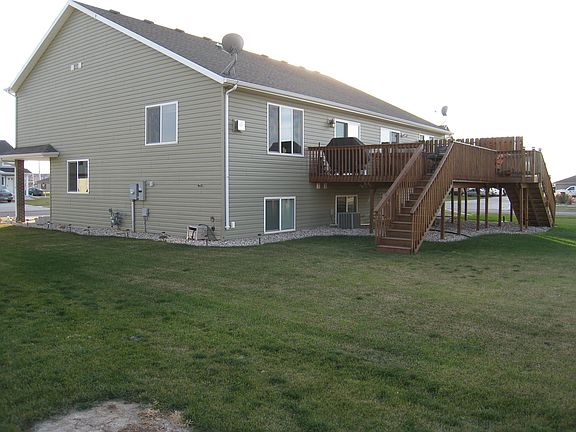 Three-level, 1,784 sq. ft. floor plan with 3 bedrooms, 3 baths, custom paint, gas fireplace, large deck, finished 2 stall garage with beautiful landscape. Huge master suite with 9' walk-in closet and master bath. Spacious 2nd bedroom and full bath on the upper level. Main level has an open kitchen with dark cabinets and breakfast bar with stainless steel appliances. Open dining area walks out to a large deck off the dining room. Open living room area with gas fireplace finish off the main level. Lower level has another bedroom, bathroom, family room, and laundry/utility room. For a private showing, please call Tim at 701-720-7300.
